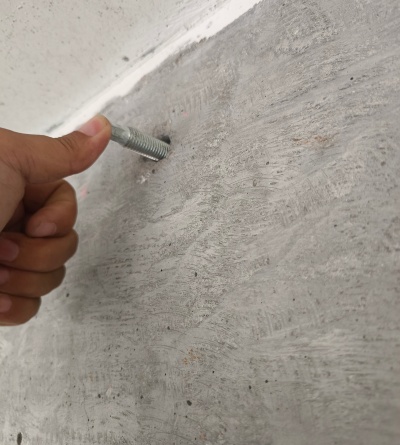 將處理好的鋼筋緩慢旋轉(zhuǎn)插入孔內(nèi),確保膠體均勻包裹鋼筋表面